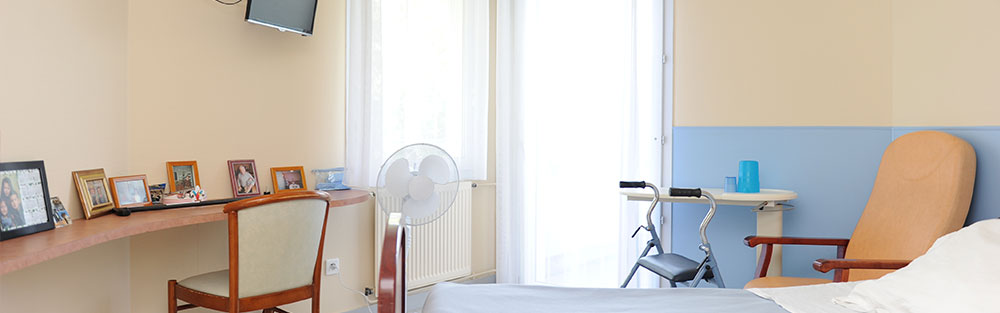 Les chambres sont meublées avec lit médicalisé, table de chevet, placard avec penderie, fauteuil adaptable, chaise et équipées d'un téléviseur à écran plat.